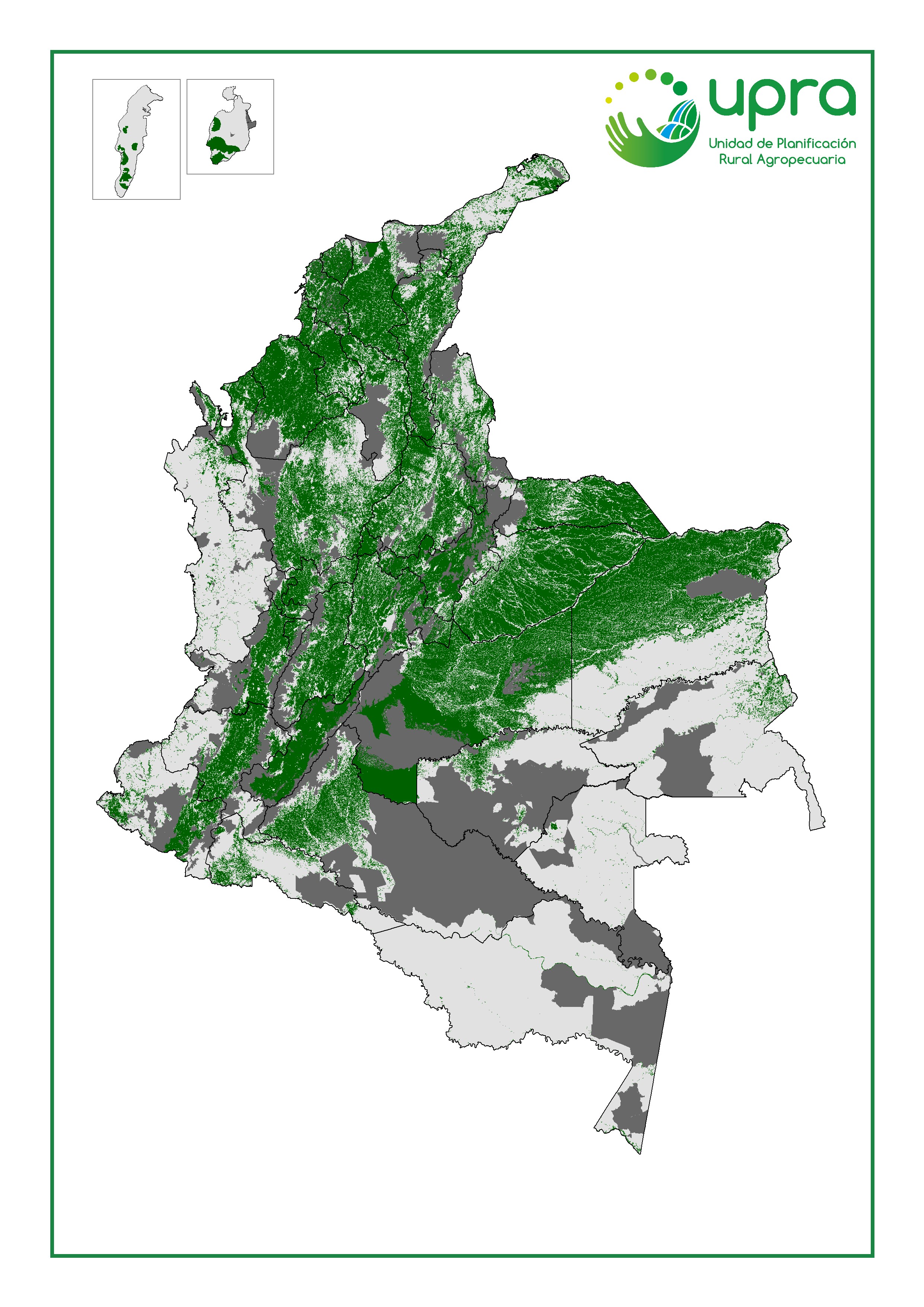 Description: <DIV STYLE="text-align:Left;"><DIV><DIV><P><SPAN>El producto se genera a partir de información secundaria oficial disponible para el suelo rural, continental e insular. Este mapa no aplica para análisis prediales, caso en el cual se deberá complementar con estudios detallados o información primaria. La unidad mínima de mapeo es de 25 mm2 que corresponde a 25 hectáreas en el terreno. La UPRA realiza las actualizaciones periódicas de este mapa, según nueva información disponible. El producto se genera desarrollando el proceso en Arcgis 10.7.1 (a partir de la herramienta de modelaje se registran los procesos usados), a partir de la información de Cobertura de la tierra periodo 2010 - 2012 (Ideam,et. al, 2014) y la leyenda del sistema de clasificación de usos agropecuarios (IGAC, UPRA, 2015) seleccionando las siguientes categorías: agricultura, agro y silvopastoril, áreas de pastoreo, cuerpos de agua, forestal de producción, otras actividades agropecuarias (Herramienta SELECT); las cuales se unen (función UNION) con las áreas de agricultura familiar (UPRA, 2021). A partir del Mapa de bosque no bosque Colombia, Ideam, 2010 actualizado según oficio del Ideam del 10 de abril de 2019 se eliminan (con la función ERASE), las áreas de bosques naturales y las áreas con exclusión técnica de los planes de ordenación forestal con lo cual se ajustan estas áreas respecto a las identificadas en el mapa del coberturas de la tierra. Posteriormente, se agrega las áreas que permiten las actividades agropecuarias de los planes de ordenación forestal, los distritos de manejo integrado y el área de manejo especial de la macarena empleando la herramienta UNION. Se excluyen las restricciones legales (reservas forestales protectoras nacionales y regionales, áreas de reserva forestal de Ley segunda categoría A, parques arqueológicos, páramos, áreas excluidas para actividades agropecuarias de los planes de ordenación forestal, los distritos de manejo integrado zonificados, y el área de manejo especial de la macarena; se actualizan nuevas áreas del SINAP que prohíben las actividades agropecuarias, de acuerdo con nueva información disponible a junio de 2021). Luego se procede mediante la herramienta AGGREGATE, a la unión de los parches mayores a 25 ha a una distancia de 100 metros, se tapan perforaciones inferiores a 25 ha. </SPAN></P><P><SPAN>Posteriormente, se seleccionan los polígonos superiores a las 25 ha. Por último, de acuerdo con el parágrafo 1 del artículo 7 de la Resolución 261 de 2018 del MADR y el Fallo C- 300-21 se adicionan las áreas con actividades agropecuarias de bajo impacto en páramos (Ley 1930 de 2018); se incluyen los predios con contrato de derecho de uso suscritos por la Agencia Nacional de Tierras (Acuerdo 118 de 2020 en zonas de reserva forestal B y C de Ley 2 de 1959), y nuevas áreas con base en información suministrada por fuentes gremiales, que cumplen con los criterios de inclusión a la frontera agrícola nacional. </SPAN></P></DIV></DIV></DIV>